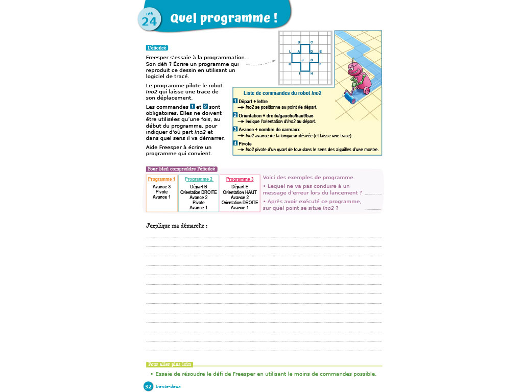 • Résolution de problèmes : 45 défis motivants à résoudre. Les énoncés, associés à une illustration, sont le point de départ d'une réflexion. Les élèves font des essais, conjecturent, testent... et explicitent leur démarche par écrit.
