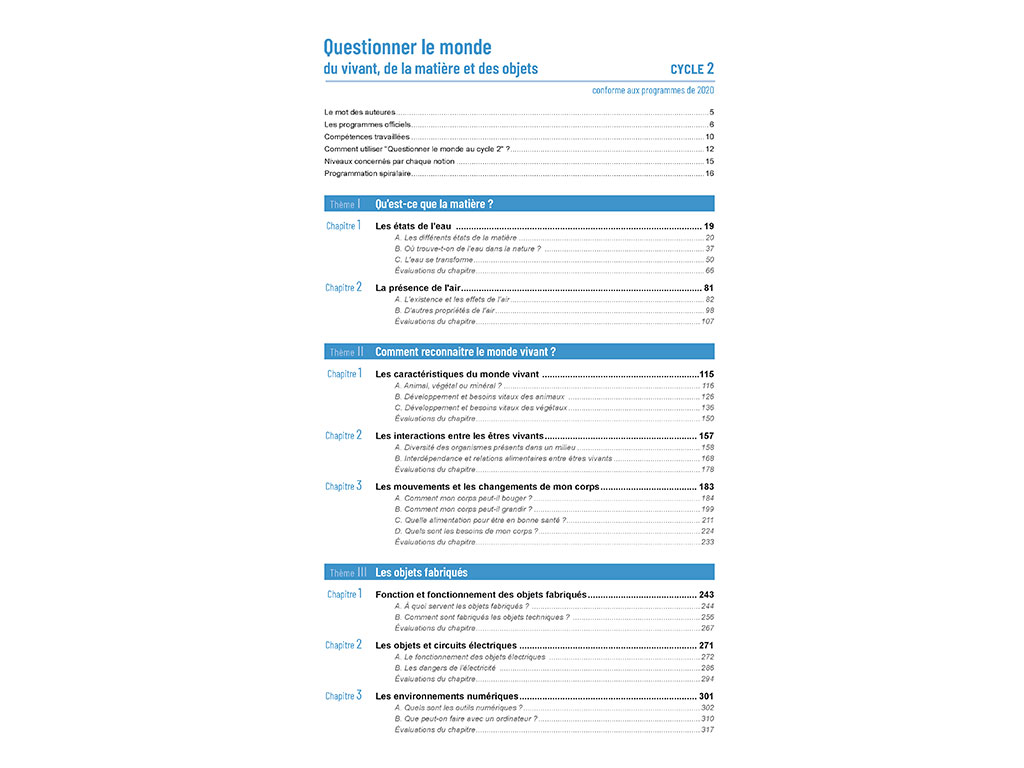 Questionner le Monde du Vivant, de la Matière et des Objets est complété par le volume Questionner le Monde de l'Espace et du Temps (éd. 2024).