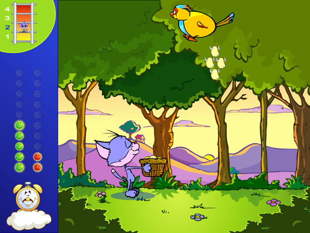 - "Attrape les œufs" : il faut appuyer sur les bonnes touches du clavier avant que les œufs ne s'écrasent à terre !