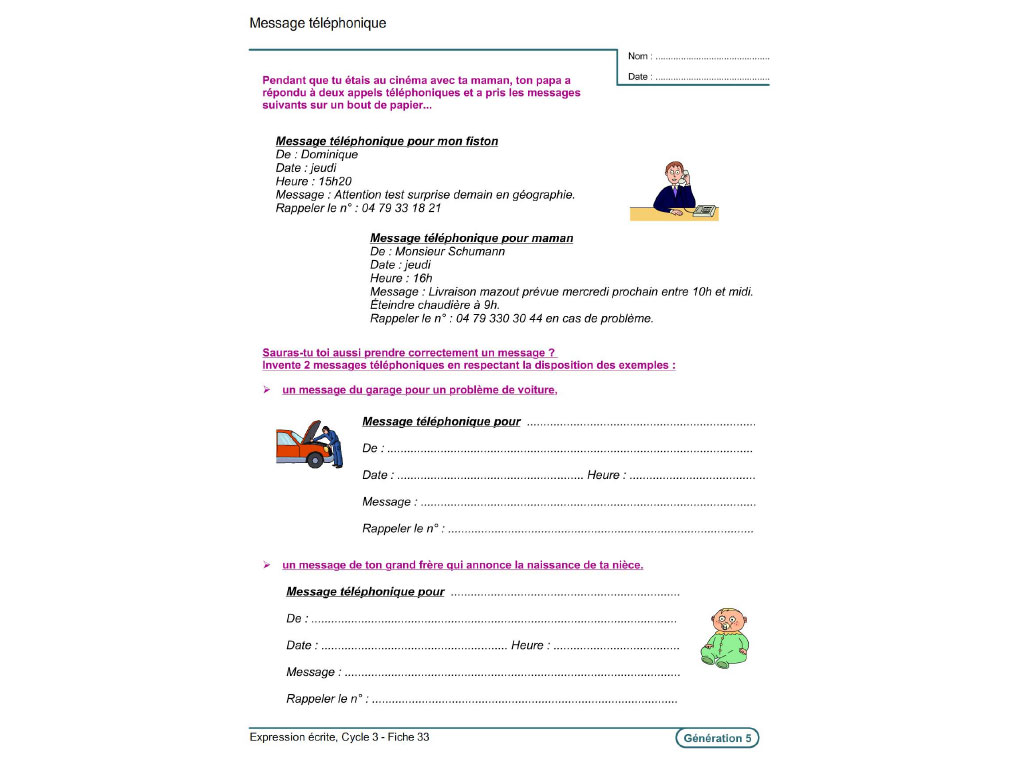 - Fiche 33 : Message téléphonique
