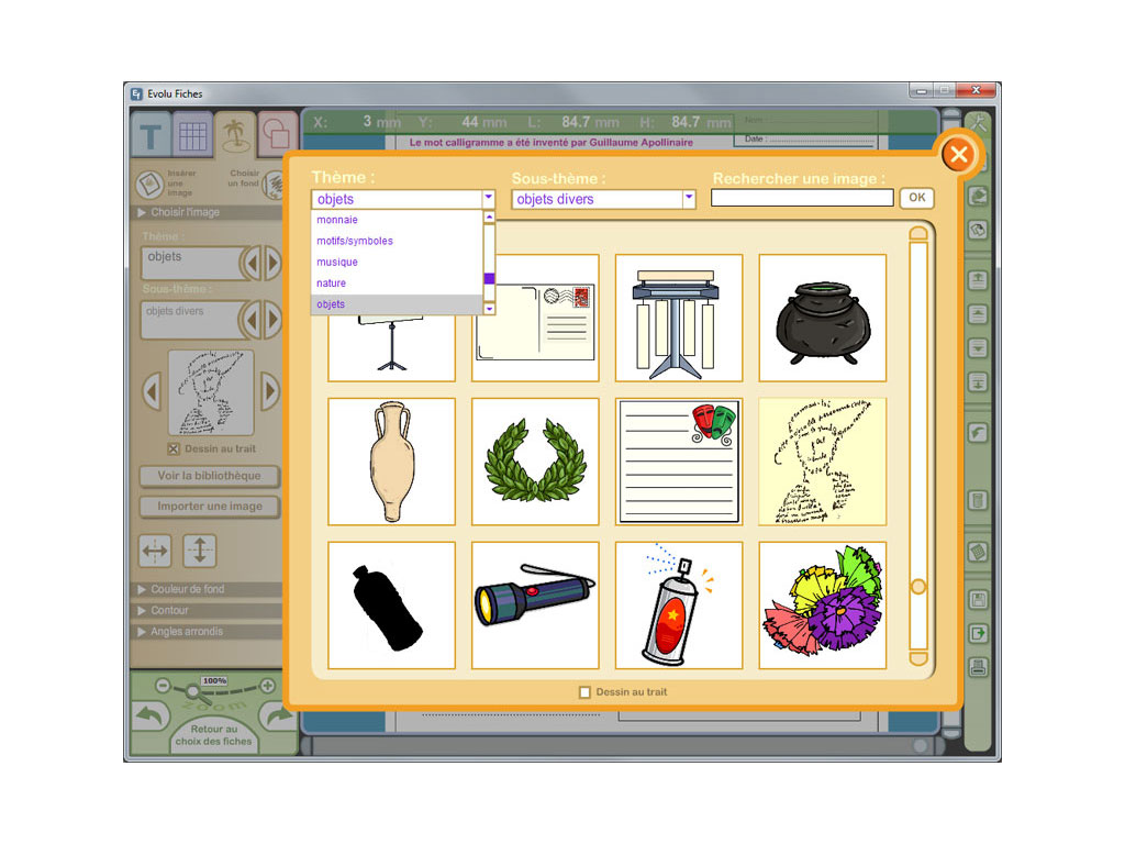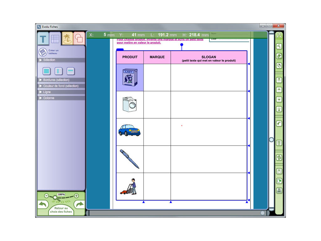 - logiciel en téléchargement (Windows) permettant d'imprimer et de personnaliser les fiches en modifiant les textes et les images ;
