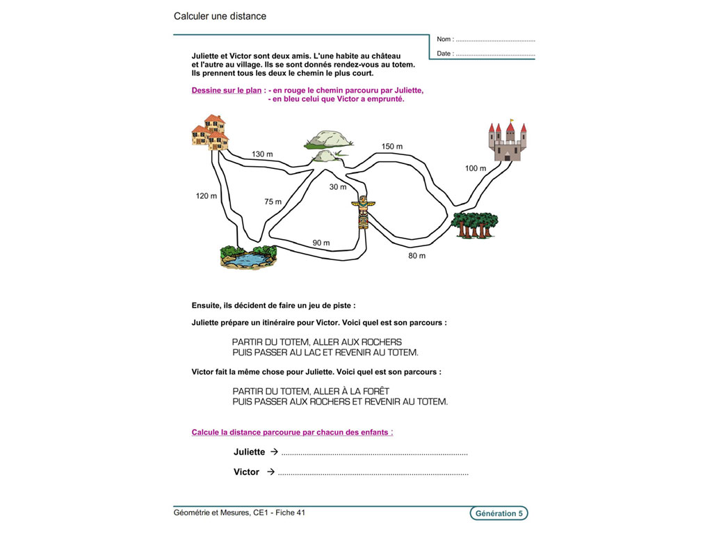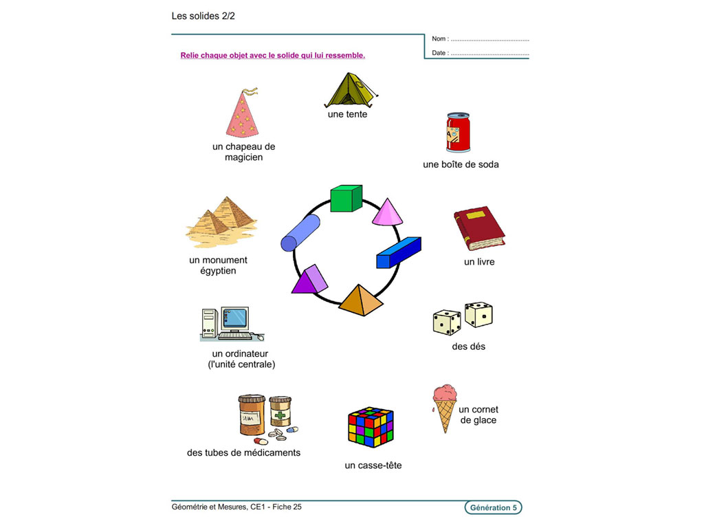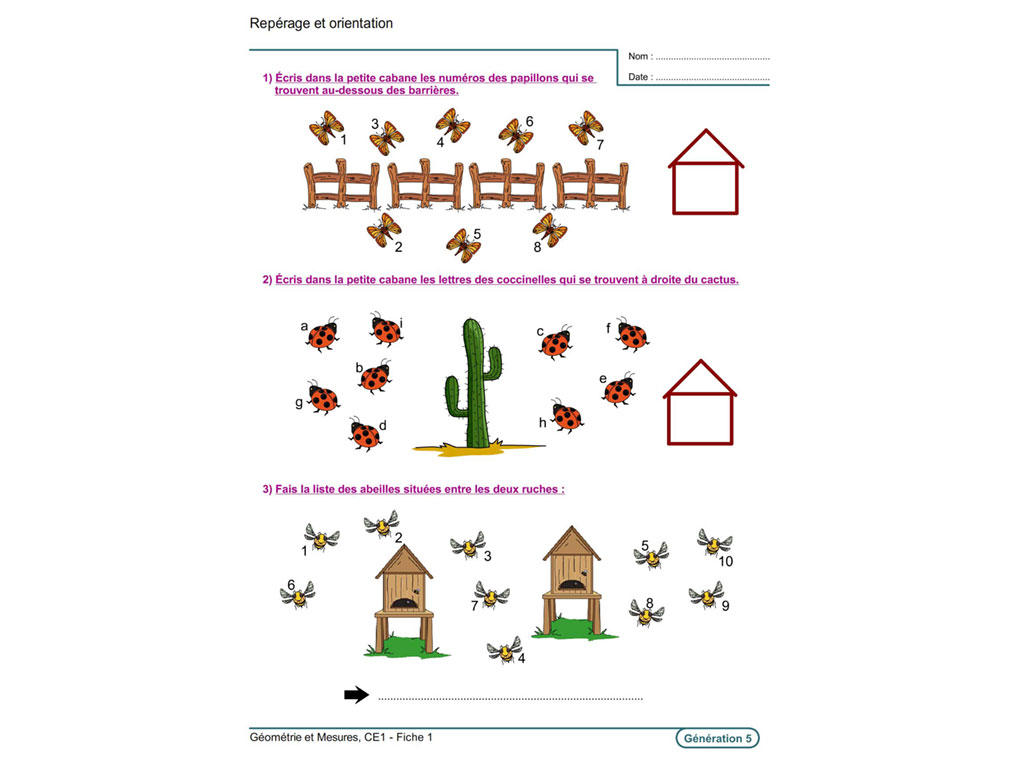 Des fiches d'exercices variés pour aborder géométrie, grandeurs et mesures au CE1...
