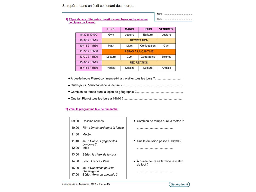 - Mesurer des masses / Lire un calendrier / Se repérer dans un écrit contenant des heures / Lire l'heure / Lire un calendrier annuel / Utiliser les pièces de monnaie / Utiliser pièces et billets...