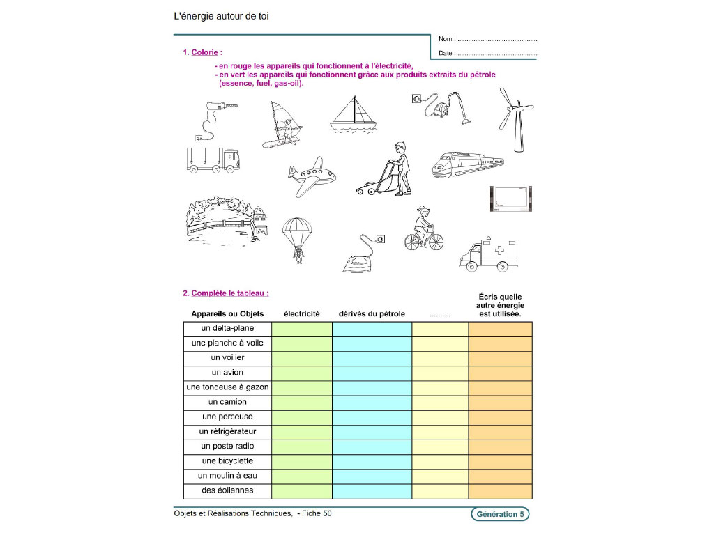 Evolu Fiches - Objets et Réalisations techniques (Cycle 3-SEGPA), des fiches d'activités et d'exercices pédagogiques avec logiciel pour aborder l'électricité, l'énergie, les leviers et les balances, la transmission du mouvement...