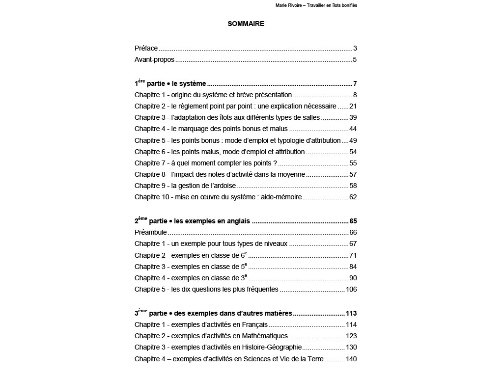 Sommaire de l'ouvrage.