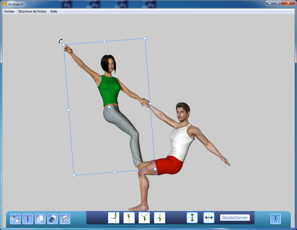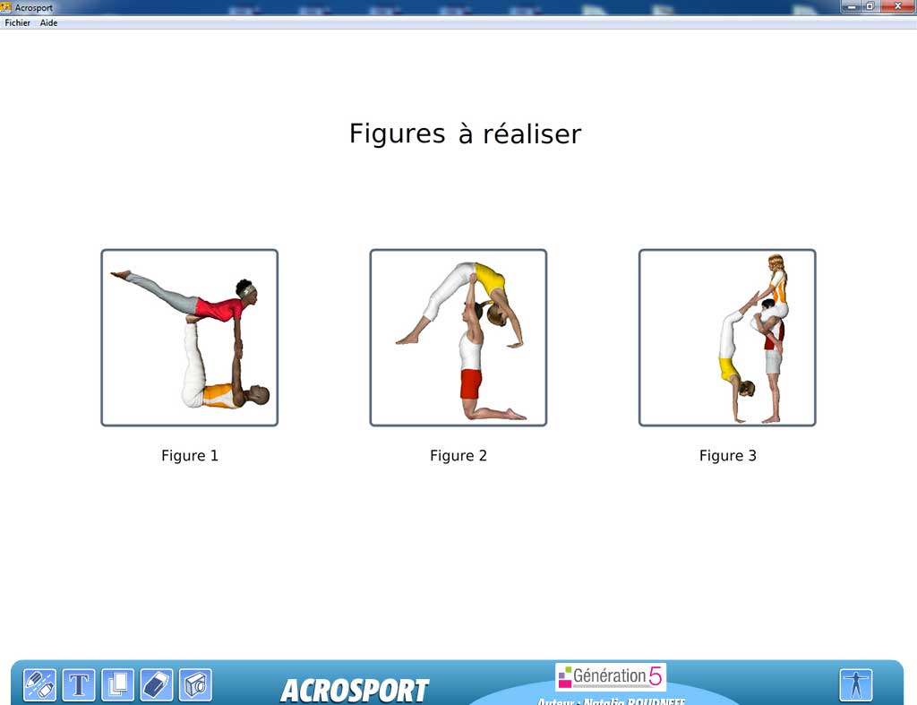 Le logiciel Acrosport permet de réaliser, avec des personnages en 3D, des pyramides d'acrosport nombreuses et variées.