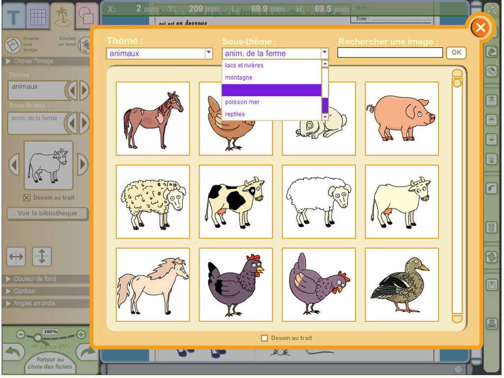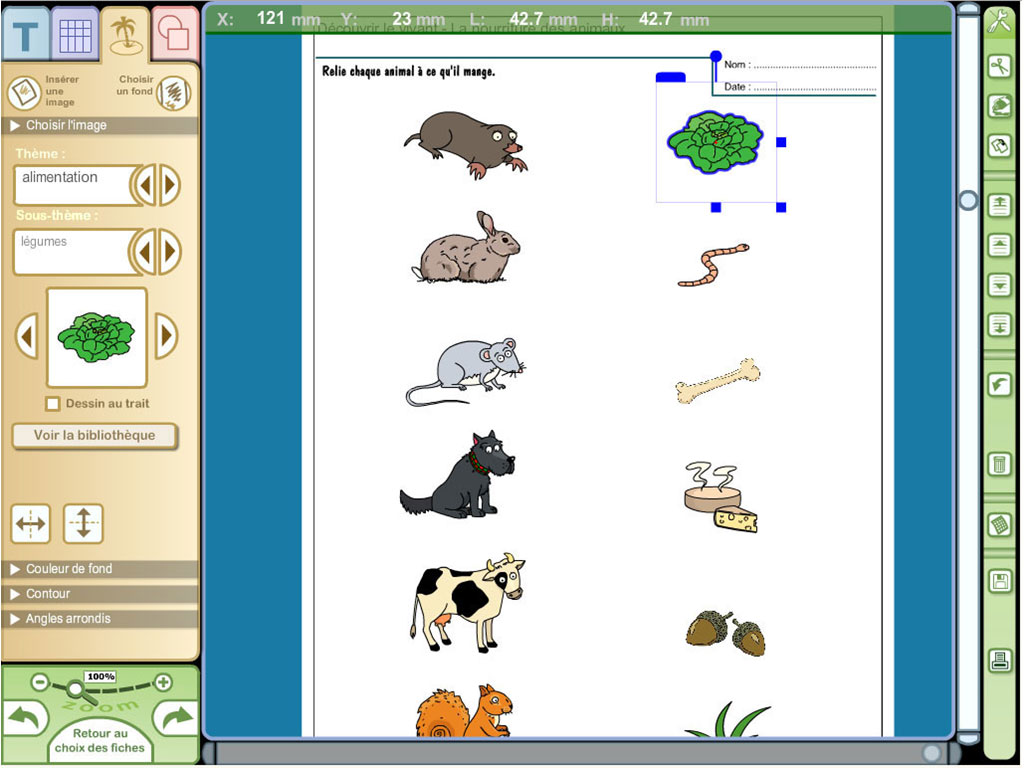 - logiciel en téléchargement (Windows) permettant d'imprimer et de personnaliser les fiches en modifiant les textes et les images ;
