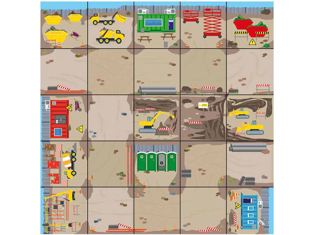 - Chantier (75 x 75 cm) : propose quant à lui de travailler les déplacements d'un endroit à un autre.