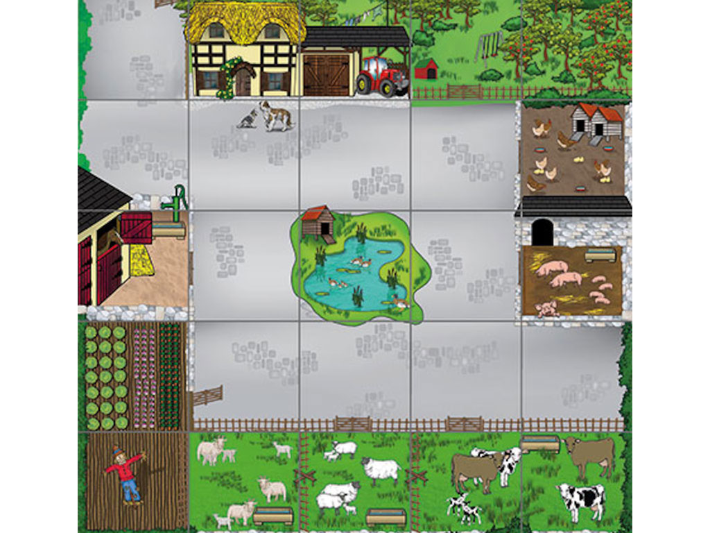 - La ferme (75 x 75 cm) : permet par exemple de travailler la narration à travers la découverte d'un environnement particulier.