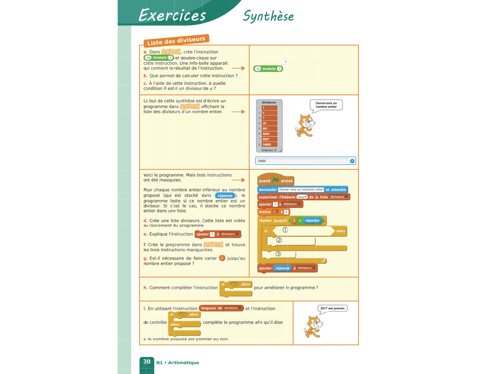 Un chapitre entier est consacré à l'algorithmique et à la programmation. On y trouve des activités de programmation débranchée, et d'autres utilisant le logiciel Scratch. Des projets favorisant l'autonomie et le travail collaboratif sont également proposés.