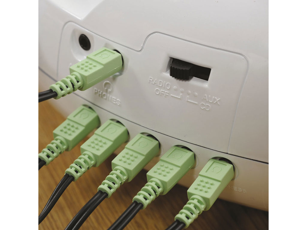 On peut également brancher jusqu'à 6 casques audio, et travailler avec un groupe d'enfants sans déranger les autres.