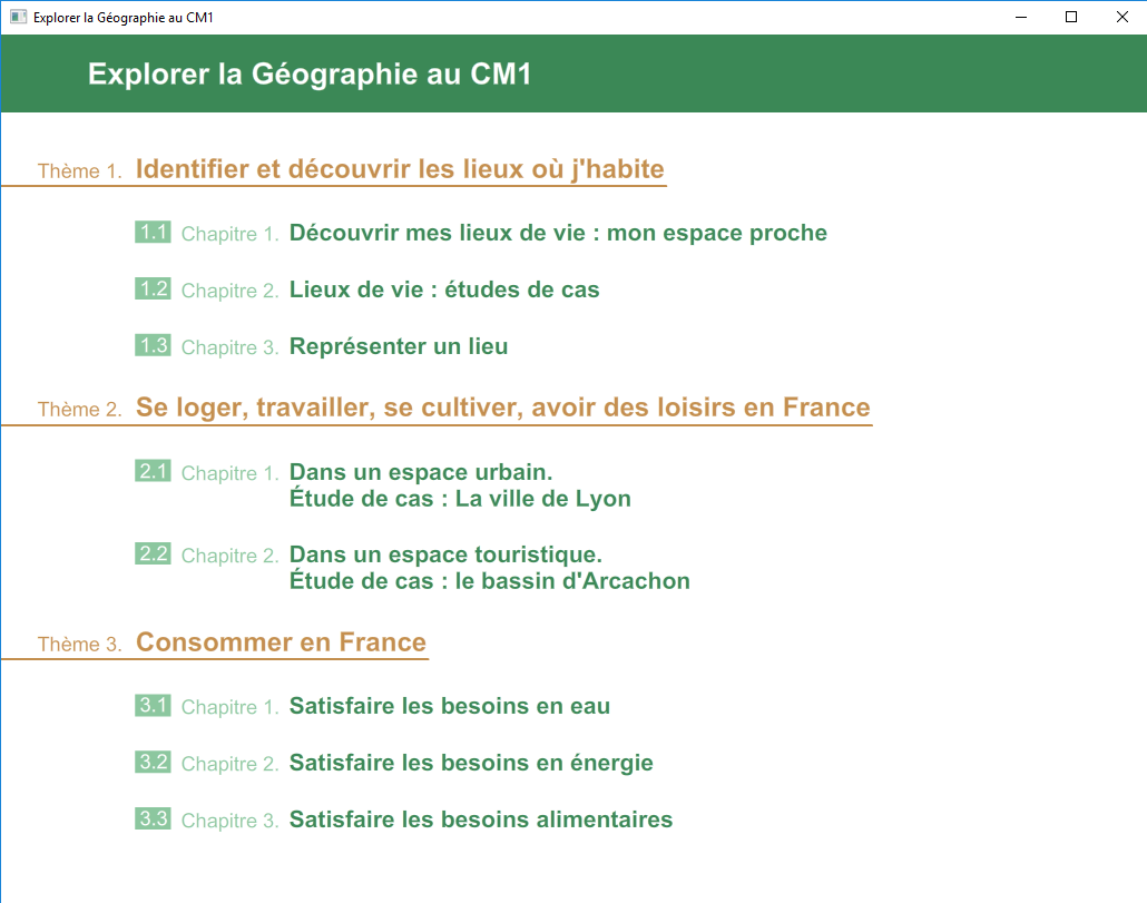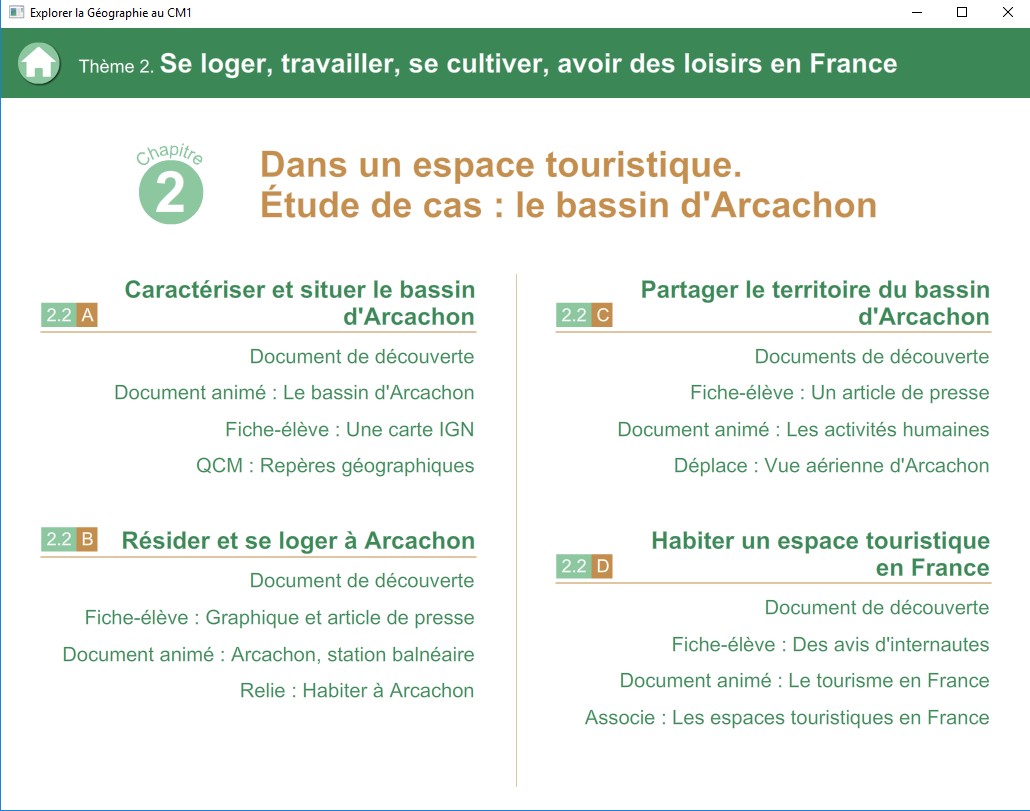 Nous vous présentons le contenu d'un chapitre du logiciel Explorer la Géographie au CM1.