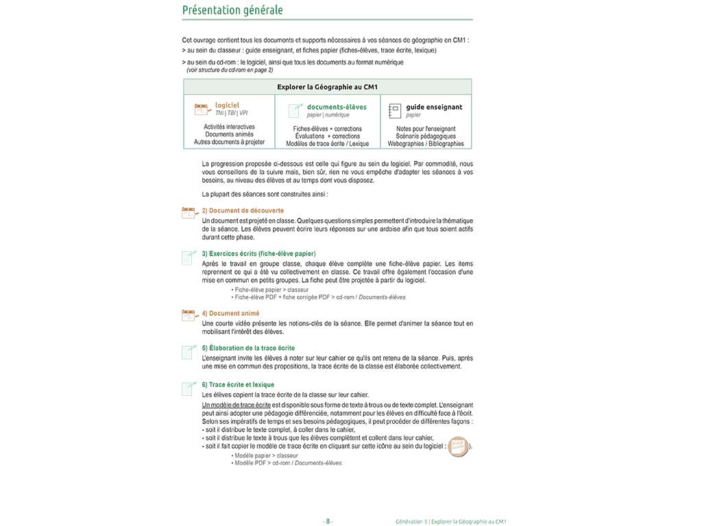L'enseignant dispose de tous les éléments nécessaires pour mener à bien ses séances et proposer aux élèves de CM1 une exploration de la Géographie attractive et motivante.