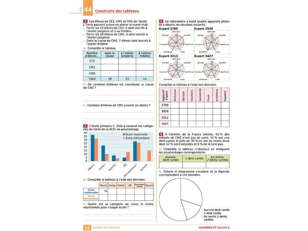 • mises en situation variées : énoncés illustrés, photos, cartes, tableaux, schémas, diagrammes, coloriages codés, énigmes, etc.