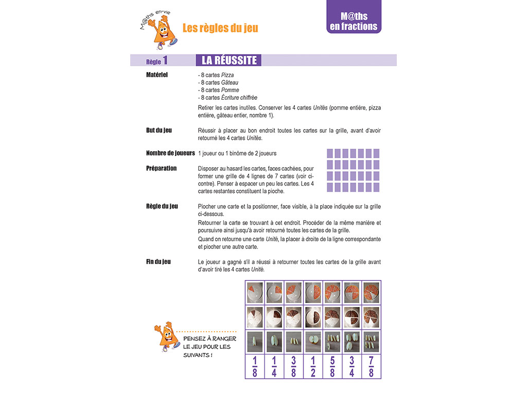 Les 3 jeux de cartes distincts, basés sur les fractions, permettent de réaliser 6 activités :