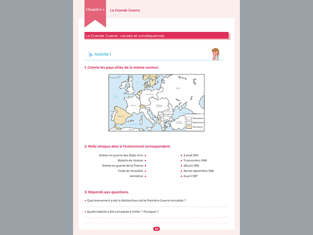 Le support papier est conçu pour rendre l'apprentissage de l'histoire motivant et stimulant, au travers d'exercices ludiques et variés et par une mise en page organisée, illustrée et aérée : textes à trous, QCM, mots croisés, questions-réponses, coloriage, schémas et frises à compléter, etc.