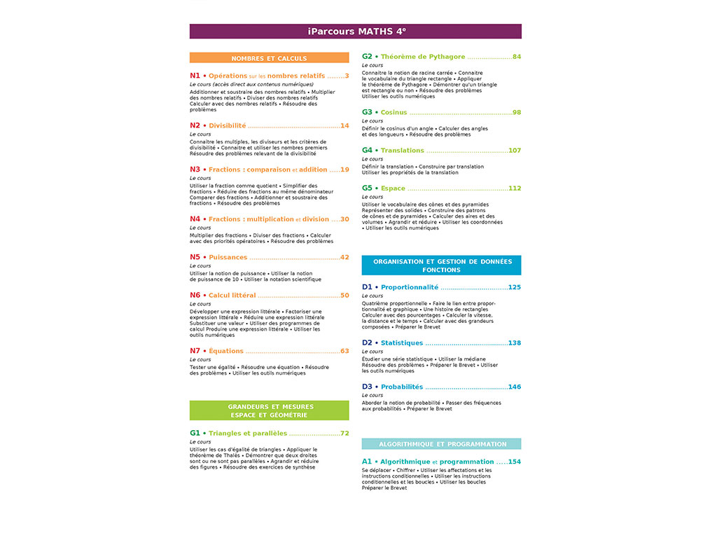 Le Cahier d'exercices iParcours Maths 4e avec cours (éd. 2022) est une solution complète structurée par 5 piliers pédagogiques : on pourrait ainsi le définir comme un cahier-manuel.