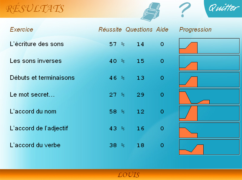 Pour chaque activité, les élèves bénéficient d'aides et d'exemples personnalisés. Les principales règles d'orthographe sont rappelées en cas d'erreurs. Chacun progresse à son rythme et vous pouvez suivre l'évolution des résultats. Ce logiciel stimulera aussi leur imagination et développera leur envie d'écrire.