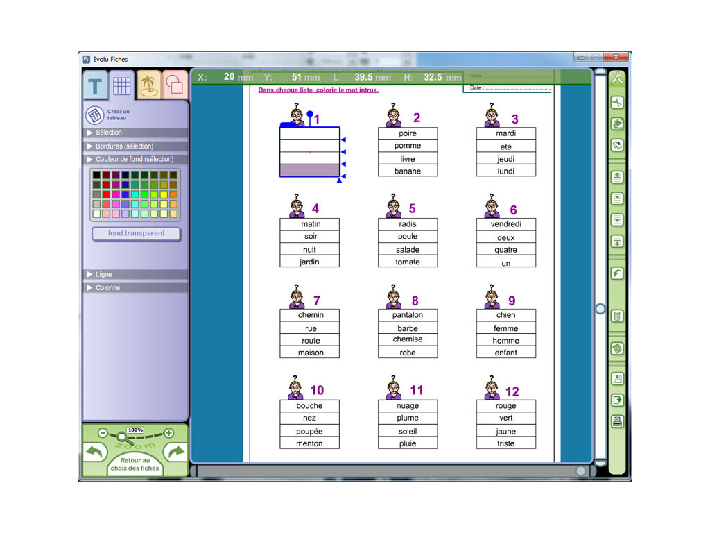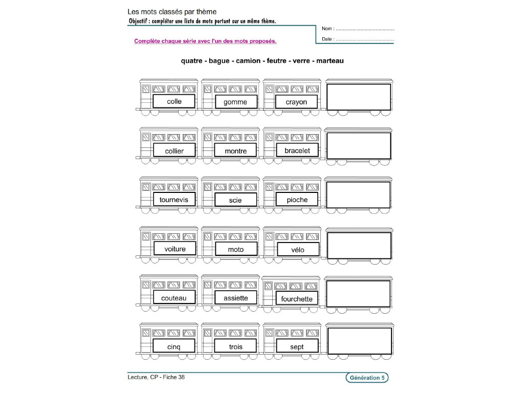 - Les mots : Mémoriser les mots outils / Identifier des mots / Associer un mot à une image / Repérer un mot intrus dans une liste.