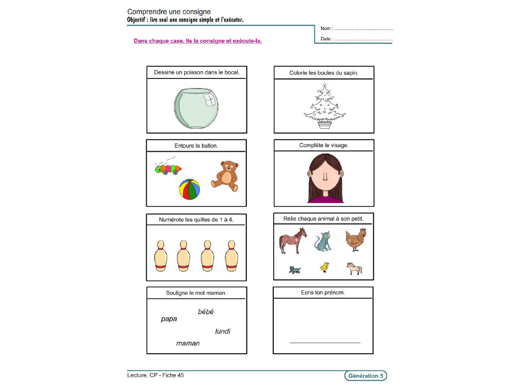 - Fiche 45 : Comprendre une consigne