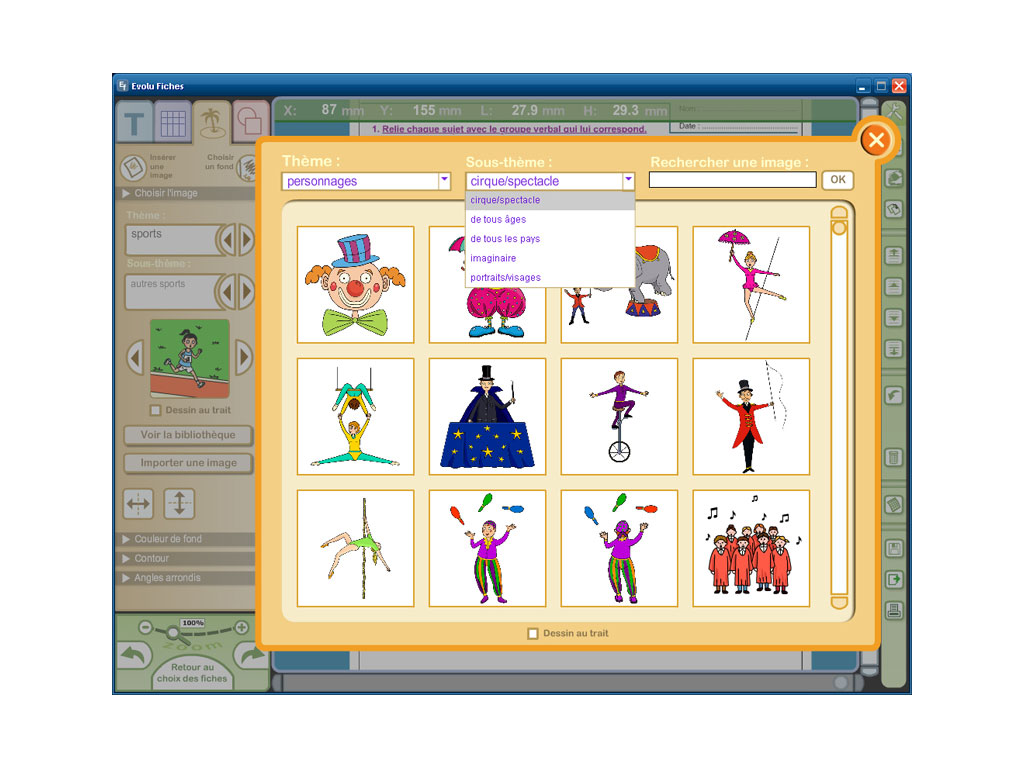 - logiciel en téléchargement (Windows) permettant d'imprimer et de personnaliser les fiches en modifiant les textes et les images ;